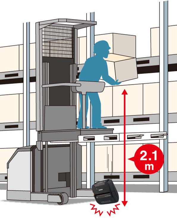 ※1 4インチ用紙幅 モバイルプリンター国内市場において。2018年9月現在 ブラザー調べ ※2 6つの面、4つの稜線を1台1箇所にて2.1mから2回落下させ動作機能及び印刷品質に異常のないこと。 但し、外観上のキズ等が発生する場合がございます |