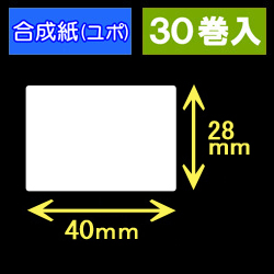 40T28U ハロー用無地サーマルラベル(40mm×28mm)合成紙(ユポ) 1巻当り640枚 30巻 /商品コード:[30533]