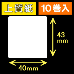 40T43S ハロー用無地サーマルラベル(40mm×43mm)上質紙 1巻当り400枚 10巻 /商品コード:[30519]