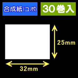 32T25U ハロー用無地サーマルラベル(32mm×25mm)合成紙(ユポ)1巻当り700枚 30巻 /商品コード:[30502]