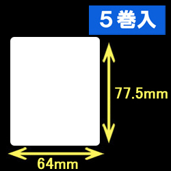 白無地サーマルラベル(64mm×77.5mm)1巻当り800枚 5巻 /商品コード:[30019]