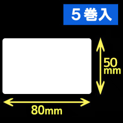白無地サーマルラベル(80mm×50mm)1巻当り1200枚 5巻 /商品コード:[30041]
